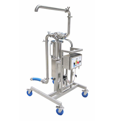 Product can be fed from an integrated hopper or a direct feed system from IBC, bulk vessel, cooking kettle or bratt pan.